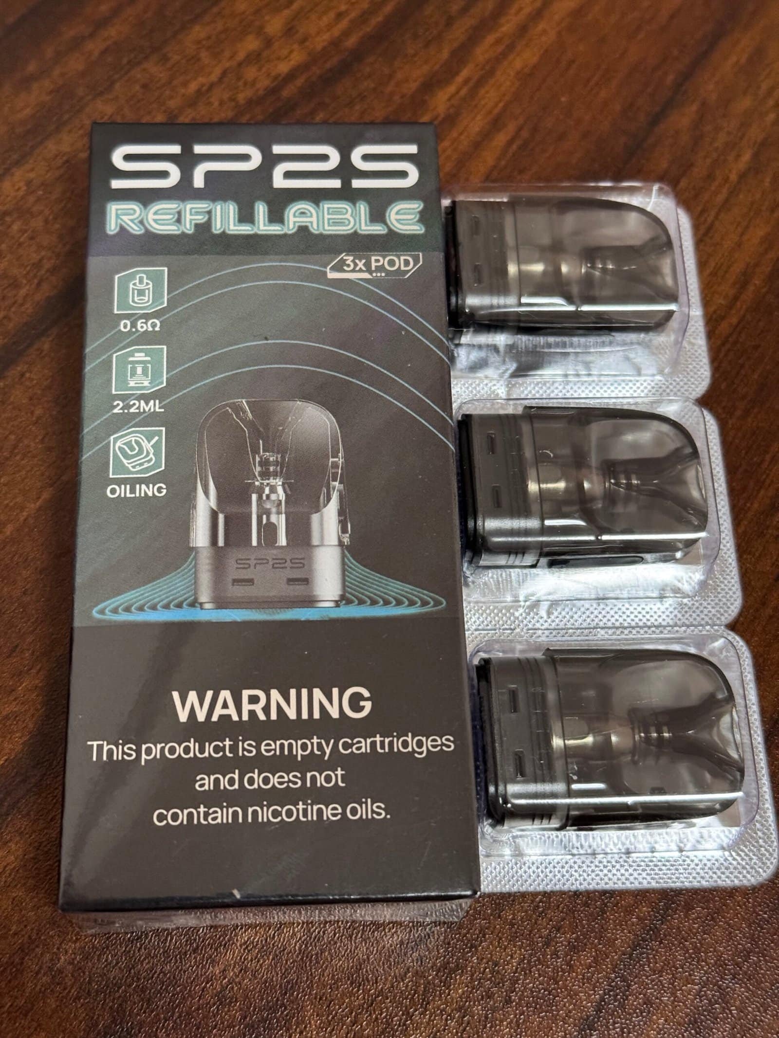 SP2S註油空煙彈 完美匹配SP2S主機的專用空煙彈帶來卓越性能,每盒包含三個2.2ml高容量煙彈,內置0.6Ω\0.8Ω鋼芯以增強口感。這些設計精心打造,旨在提供一個無比順暢的吸煙體驗,讓您快速享受到持久而味道濃郁的電子煙霧